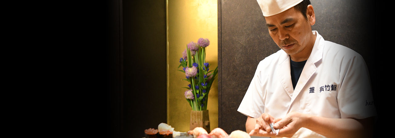 茅野市にある呉竹鮨にて修行をさせて頂きました、その店より暖簾分けを頂き、平成8年にこの地に寿司店を開店しました。
